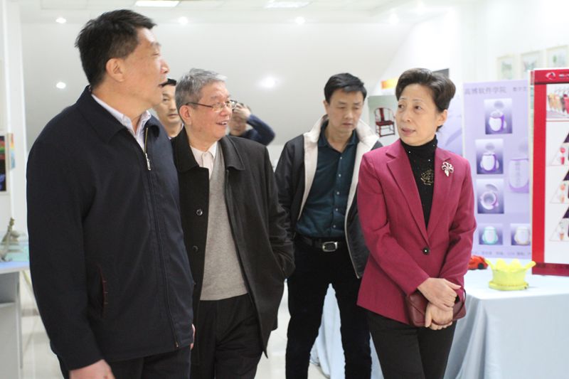 王跃山副主席一行首先参观了学院移动互联网技术实训基地、计算机高新技术智能化考试站、微软认证考试中心、冠博软件测试中心、大师工作室以及数艺系学生作品展厅,并兴致勃勃的观看了学院无人机的飞行表演。