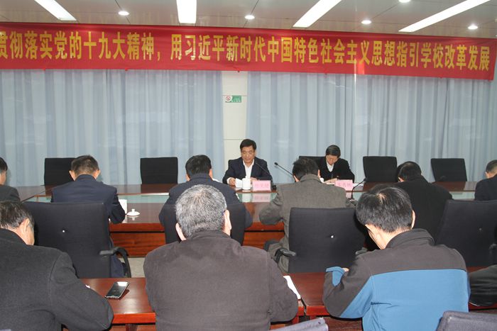 徐美健强调,高校是党领导下的高校,是中国特色社会主义高校,肩负着学习研究宣传马克思主义中国化最新成果、培养中国特色社会主义事业合格建设者和可靠接班人的重大任务,是意识形态主阵地。当前和今后一段时期,要把学习宣传贯彻好党的十九大精神作为首要工作,切实抓紧抓好。要原原本本、原汁原味认真研读十九大文件,广大师生要在党的领导下,牢记习近平总书记的殷切嘱托,坚定理想信念,志存高远,脚踏实地,争做新时代中国特色社会主义事业合格建设者和可靠接班人!