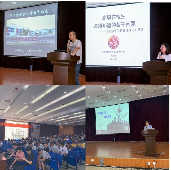 入学教育共分六场,第一场由学生处王琴老师主讲,王琴老师以生动形象的互动形式介绍了青春健康的基本概念,如何预防艾滋病的传播等知识;第二场由学生处陈祎雯老师主讲,她以无奋斗不青春,人生因拼搏而精彩为主题的心理健康教育演讲,讲授了大一新生常见的心理问题以及如何促进心理健康的途径;第三场,由团委胡赛老师主讲,胡老师主要介绍了学工系统和门禁系统的使用,团员关系转接流程培训,并向同学们介绍了校级七大学生社团;第四场由图书馆于洋老师主讲,于老师简要介绍了图书的分类知识以及馆藏的布局情况,还介绍了图书检索知识、借还书的相关规定;第五场由教务处张林玲老师讲解,她介绍了学院教务系统的使用、学籍管理的基本规定和学院实行的弹性学分制、导师制、信息员制等规定;第六场特邀科技城派出所陆警官主讲,陆警官根据自己多年的办案经验及结合现代大学生中常见的网络诈骗为主题,为同学们详细分析了校园常见诈骗案的做案手法,教导大家一定要提高警惕,加强防范,陆警官还谆谆告诫同学们,一定要遵纪守法,做文明的大学生。
