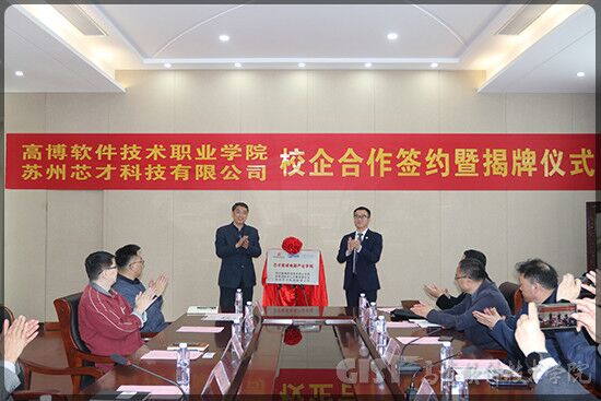 学校副校长张建初与芯泽科技(江苏)有限公司总经理徐勇代表双方签约,与苏州芯才科技有限公司总经理陈科研共同为学校、公司、半导体技术人才教育委员会携手创办的“芯才集成电路产业学院”揭牌。