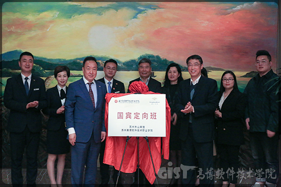 周苏国总经理对学校一行的到来表示热烈的欢迎,并对东山宾馆的建设、发展做了详细介绍。东山宾馆作为国宾馆之一,在近30年的时间里先后接待多位国家领导人,并承担多次重要国际性会议的接待任务,随着接待任务的繁重和接待要求的提高,东山宾馆在不断扩大建设规模的同时,也迫切需要人才队伍的扩大,正是与高博学院多年的合作,为企业人才的需要提供了坚强的后盾。签约和揭牌仪式的举行,是双方升华感情的重要一步,校企双方将加快在人才培养等方面的合作步伐,为今后的合作发展提供更坚实的平台,更好的向社会、向国际彰显国宾班、定向班的风采和特色,切实履行好“服务”的职责。