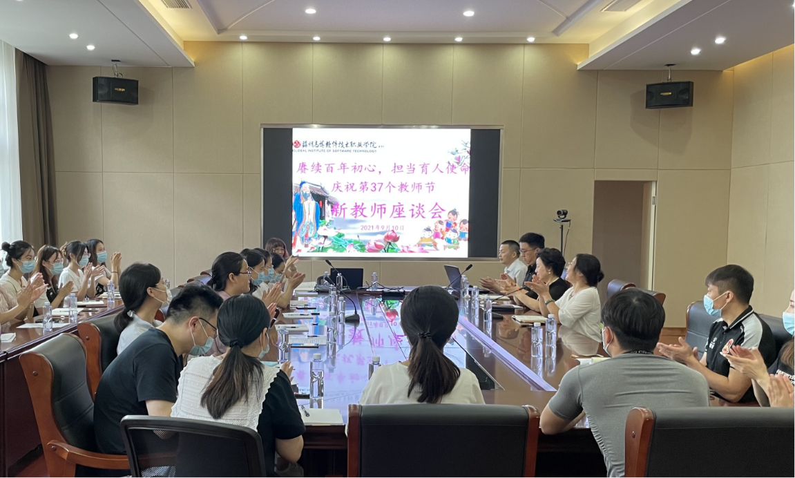9月10日上午,我校庆祝第37个教师节新教师座谈会在行政楼会议室召开,学校党委副书记、副校长倪筱琴,校长特别助理、医学与公共服务学院名誉院长薛小玲,人事处处长龚三琼,教务处常务副处长胡玮,资深教师代表艺术与建筑学院院长助理江水明以及21位来自各单位的新教师代表出席座谈会。会议由倪筱琴副校长主持。