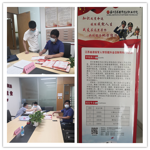 为了响应国家对退役军人的相关政策,做好退役军人的教育培训工作,高博软件技术职业学院作为江苏省退役军人学历提升(全日制专科(社招))、教育培训的承训单位,我校继续教育学院在高新区退役军人事务局设点,近距离加强针对退役军人的招生宣传、咨询服务工作,鼓励退役军人报读我校的学历提升和教育培训项目,为退役军人服务地方经济,高质量就业作出贡献。
