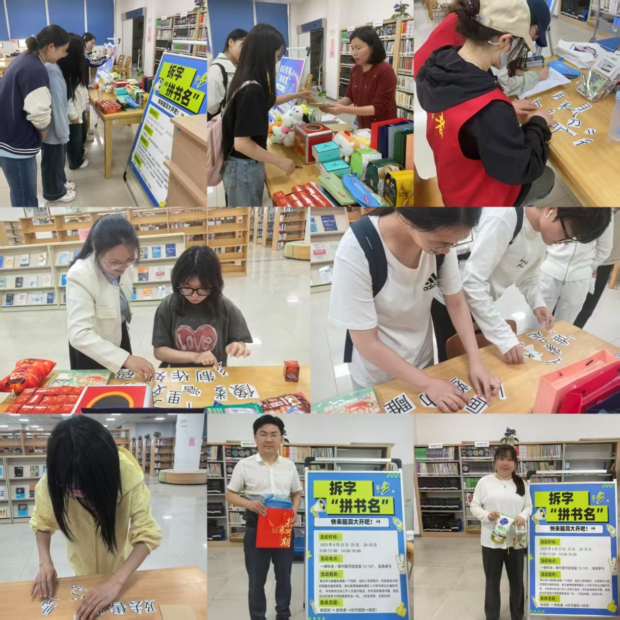 2025年读书节系列活动之“拆字拼书名”活动,于4月23日—30日在图书馆一楼科技/期刊图书阅览室开展。本活动以独特的创意和丰富的文化内涵,吸引了众多师生踊跃参与,在拆字解谜与拼合书名的过程中,让读者在游戏中感受传统文化的魅力!带领大家走进奇妙的文字与书籍世界。